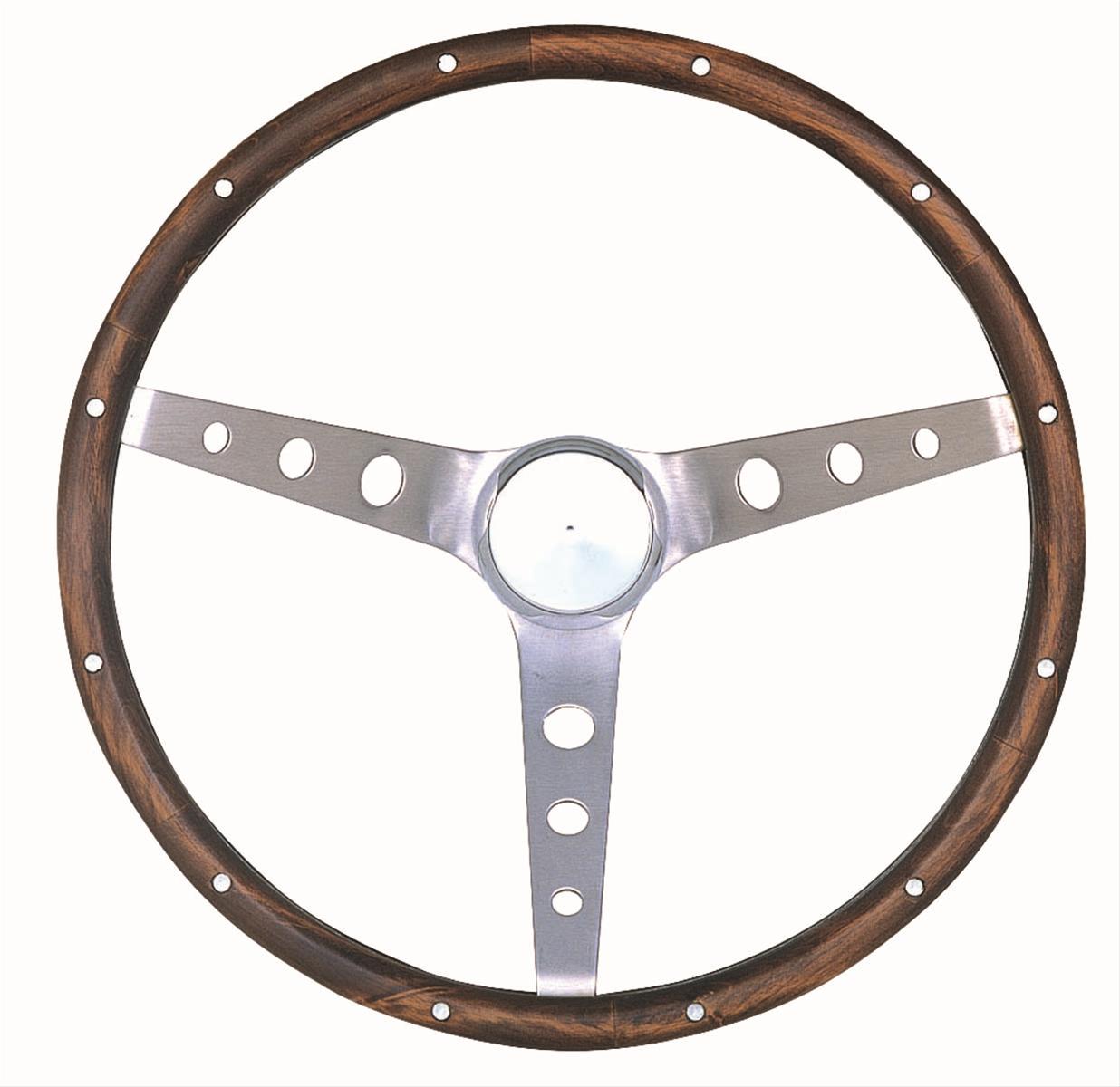 Steering Wheel, Classic Nostalgia, Stainless Steel/Brushed, Wood/Walnut, 3-Spoke, 15 in. Dia., 3-Bolt,